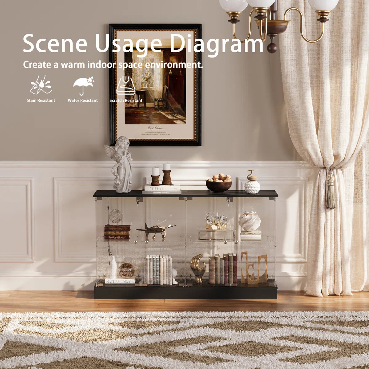 Die vollständig verglaste Konstruktion ermöglicht eine 360°-Sicht auf Ihre Sammlung und schützt sie gleichzeitig vor Staub und Berührungen. So bleiben Ihre Schätze sicher aufbewahrt und Ihr Zuhause ordentlich. -