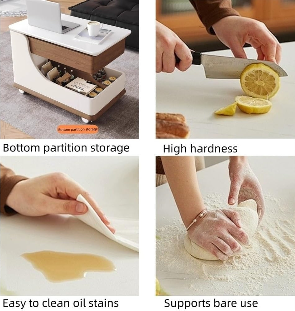 Der ROYA bewegliche Couchtisch vereint modernes Design mit flexibler Höhenverstellung und praktischem Stauraum. Ideal für das Wohnzimmer, passt er sich verschiedenen Nutzungssituationen mühelos an.